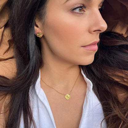 Die Clover Bright Halskette in 18 Karat Vergoldung ist ein elegantes Schmuckstück, das mit seiner filigranen Ausstrahlung pure Lebensfreude symbolisiert.